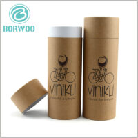 You might be in need for such a custom small kraft paper tube packaging box with lid for food, as it is now a new trend to pack food in simple kraft paper box without many printed patterns, because most of the time printing means using chemical substances on the material which is not in accordance with today’s safe and natural concept of food packaging solution. Made of 200g cardboard with eco-friendly kraft paper on the surface, this tube box with lid has only a single color printing. It can be used as package for snacks, dry foods or small bottle of wine, and can have a pretty good performance. Although the color is simple, it can play with abstract design and still gives a stylish look, which will make both food producers and customers like this small kraft paper tube box with lid.