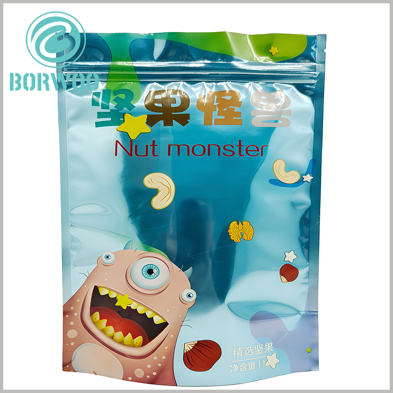 Crafted from food-grade metallic laminated film, the pouch delivers exceptional high-barrier protection against moisture, oxygen, and UV light, preserving the crunch, flavor, and nutritional integrity of nuts for extended periods. The sturdy base dimensions ensure the pouch stands upright effortlessly on shelves, maximizing product exposure and standing out among flat or unstable packaging alternatives. The built-in resealable zipper closure allows for repeated use, locking in freshness after each opening and reducing food waste, a key selling point for health-conscious consumers.