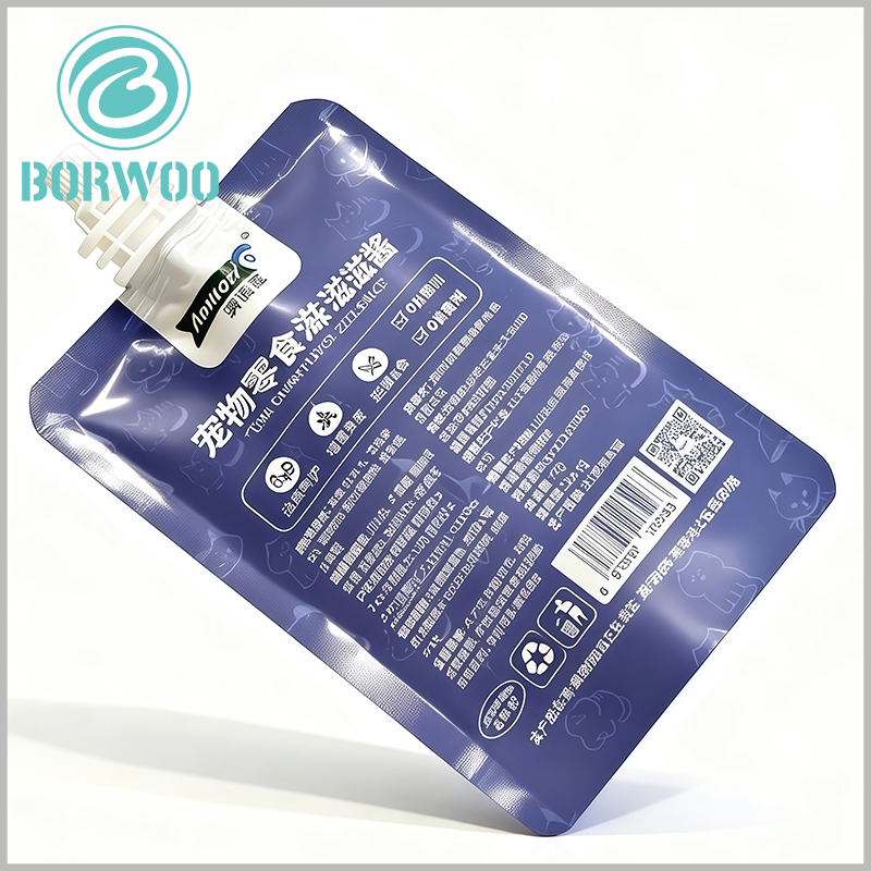 We offer full customization for our 70g Corner Spout Pouch for pet snacks, including custom logo and brand design printing, turning the packaging into a powerful brand marketing tool. For eco-conscious brands, we also provide recyclable and compostable material options, helping your brand align with global sustainable development trends and attract environmentally aware consumers. In addition, our wholesale service for 70g Spout Pouch supports flexible MOQs, with strict quality control and fast lead times. Every detail, from material selection to printing techniques, can be customized to match the positioning and needs of different pet food brands.