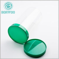 These are a series of simple clear tube packaging boxes with printed plastic lids, very economic but can be applied to a wide range of products and be produced in a quite brief delay. The material used is simply PVC board with 0.3mm of thickness, solid enough for common daily use. The advantages of this tube box is that it can be produced massively very quickly with good cost, and with printings on the lid, it gets a good balance between multi-usage and universal design. You can use it for food, small toy, small electronic product, etc. All just by changing the information printed with full color printing on the lid, and customers can observe the product directly through the transparent structure.