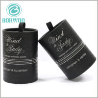 Custom black cardboard tube box packaging with pull ring for candle packaging Image