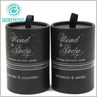 For some festivals or even special moments, or even for therapy, candles are needed, thus this custom black cardboard tube packaging box for candle, with silk pull ring is also needed. For reach the maximum protection to fragile candle, especially artistic candle that needs good shell, the tube packaging box is made by 350g cardboard with 80g chrome paper applied on the surface for decoration. On the top, a little pull ring made by silk is set to help you to easily remove the packaging box without any possibility of deforming the candle. On the surface, this box applies hot silver stamping and convex printing to achieve attractive visual effect.