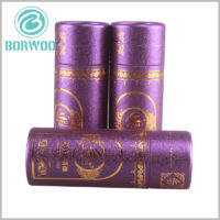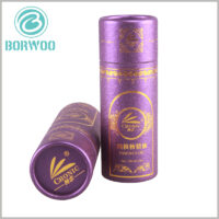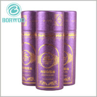 Here we present you this exquisite small round tube packaging box, dedicated for 20ml or 30ml essential oil bottles, quite a nice choice for your stylish cosmetic products. This tube box is made of good material: 300g SBS cardboard and purple paper with thin motif compressed on the surface. There are two options for the surface, purple or golden color, but you can also ask to get other custom colors. The printing of LOGO is realized with hot gold stamping, so attractive and high-end, going on well with the value of essential oil. This package is compatible with both 20ml and 30ml essential oil bottles, a package for 2 specifications, a wonderful choice for economizing the cost and facilitating the fabrication. For this purpose, there are two sizes of EVA sponge rings inside to fix the 20ml and 30ml bottle, and of course, to ensure a splendid protection.