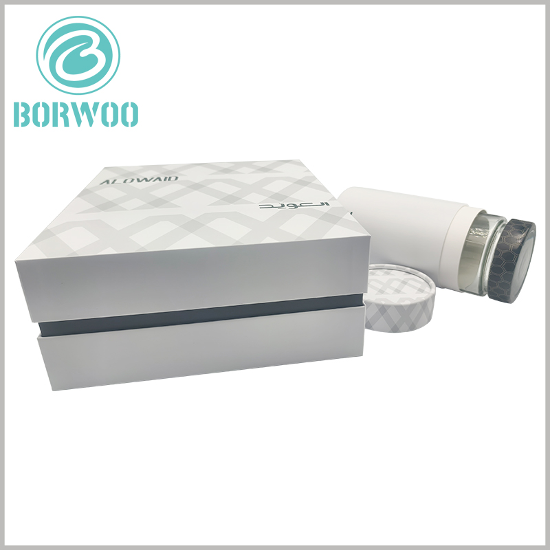 This is a gift box set jointly launched by us and Kuwait Honey Brand. The honey jar is placed inside the sturdy paper tube packaging to protect the product well. Two paper tubes are then placed inside the gift box to present it to consumers in a unique way. The difference between the high-end gift box set and other ones is that the insert inside is made of paper card as raw material, making the whole box more environmentally friendly and biodegradable. Both the paper tube and the box can be customized according to actual needs, so we can provide suitable product packaging solutions according to your products. Please feel free to contact us.