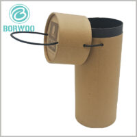 To carry bottles for wine or other kind of drinks, such a good kraft paper tube packaging box with sling handle is quite a good idea, both for protection, promotion, and convenience to customers. Made of refined kraft paper along with black cardboard, the style of the package is natural and simple, however elegant and exquisite. The sling handle, made with nylon, can be regarded at the same time a good decoration and a feature for convenience for customers. The printing technology used on the surface is classic single color printing, because no technic is more suitable for such design than this one. The package offers good protection and great attraction to the product inside.