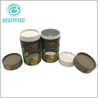 Attractive spice packaging design is very important for product sales. We developed a creative food packaging with a pepper powder customer in the UAE. The customer’s pepper powder is mainly for tourists, and the product positioning is relatively high-end, with high requirements for packaging. There is a paper sifter on the inner top of the paper tube, which allows the powder to be poured out through the small hole for use. The paper tube is designed with a semicircular window, which allows customers to directly see part of the product inside, with an excellent display effect, which is very helpful for product sales. The reference diameter of this paper tube is 55mm and the height is 100mm. If your product and capacity are different, we can provide you with customized food-grade paper tube packaging to match your needs.